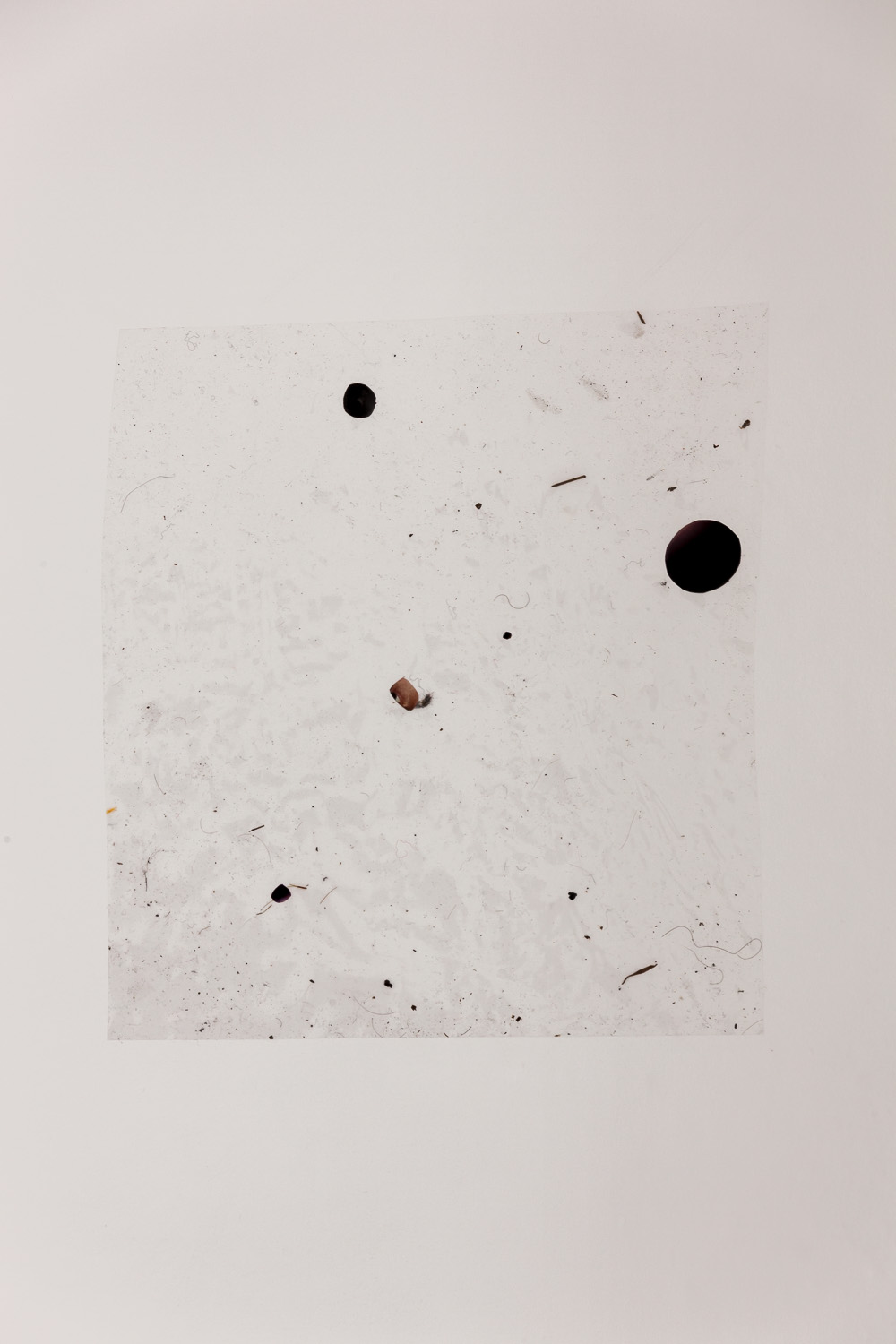 Clément Rodzielski, Paume fauve, 2014, plateau, encre, nettoyants divers