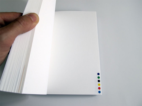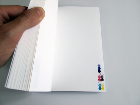 Chez Merske, Tim Head vide les pages de leurs contenus pour décentrer l’attention sur les gammes de contrôle couleur, ces centres marginaux du maintien technologique de l’ordre de la reproduction colorée. Une façon de redonner le pouvoir au centre du regardeur / lecteur, pour reprendre la vieille théorie du décentrement de Rudolf Arnheim…