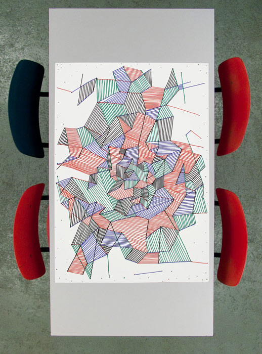 Une pratique graphique programmĂ©e et procĂ©durale qui rappelle la peut-ĂŞtre pas si Ă©trange concomitance du moment conceptuel ou art de l’information, du structuralisme du « linguistic turn Â», et de l’âge informatique au tournant des annĂ©es 60.