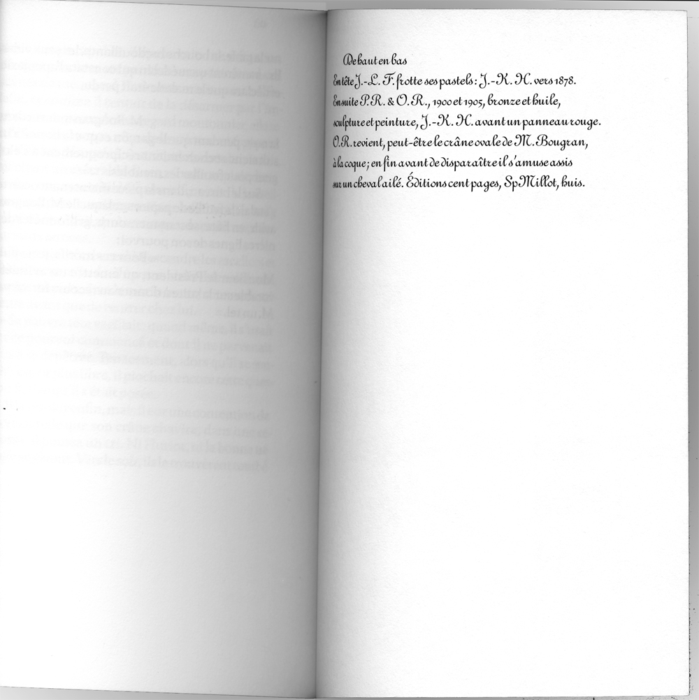 Si c’en est une, la citation de Perec qui titre le colophon de La retraite de Monsieur Bougran n’a rien d’une évidence. Et le sens autoréférentiel de l’inscription dirait-il seul ce que la formule « de haut en bas » éclaire du dessin du livre ?