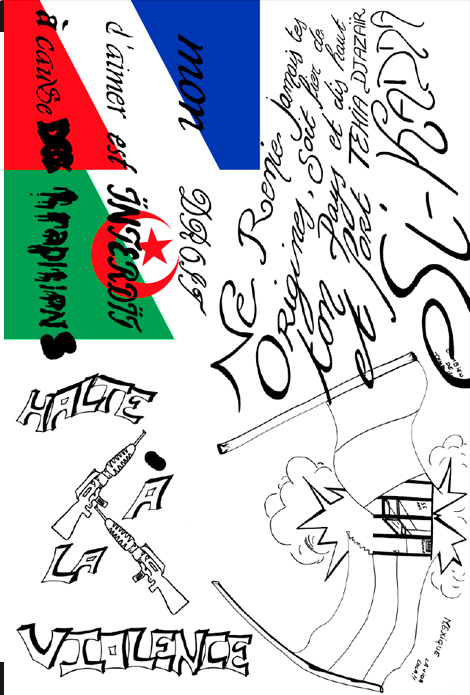 Le jeune graphiste ne s’est pas senti en droit de donner un cadre bien défini à cette mission d’urgence. Il a plutôt choisi d’interroger la responsabilité du graphiste et de l’animateur plus ou moins culturel, en général, et dans l’espace si tendu de ce cadre carcéral en particulier. Un espace de surveillance et de punition au sein duquel la question de la liberté, fut-elle d’expression, peut particulièrement poser problème…
