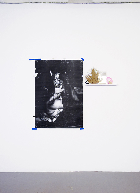 - Here, There, Mirror, Hole, Through, Against. Snake and Mouth. Poster, wooden shelf, laser-cut acrylic mirror, plywood and plexiglas. Poster: 118 x 84 cm./ shelf with objects: 55 x 30 cm. 2010