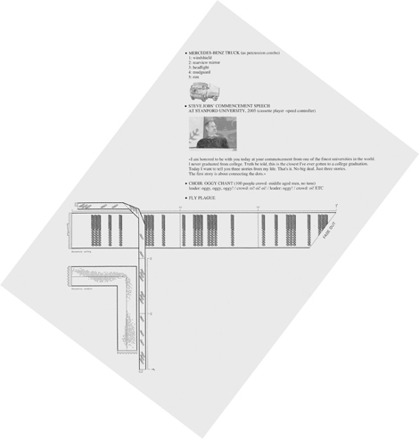 - Eternal Loop (Schema for Random Ideas. Ideas Become Sound, Sound Remains Here. Music Score Inspired by Steve Jobs). Laser / inkjet prints on paper and frame, 97 x 97 cm. 2010