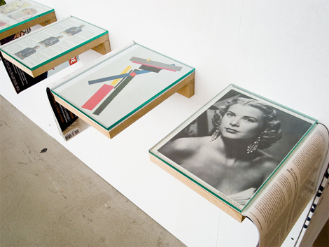 - Untitled (Waiting for Title. French Magazines). 14 French magazines, DM shelves, glass. Variable dimensions. 2009
