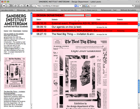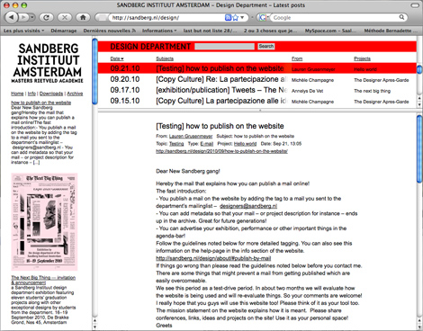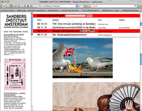 Revenons au Sandberg, l’épatante Lauren Grusenmeyer prend sa directrice au mot et propose, pour le département design, un site qui expose au public les échanges de mails, jusque là internes, des étudiants et des enseignants de l’école. Question de l’espace privé à l’heure d’internet mais aussi politique de la transparence, de l’horizontalité des rapports de pouvoir, d’une économie de la contribution et de l’intelligence collective.
