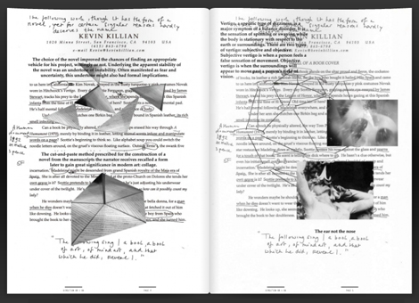 L’odeur d’une couverture de livre, l’atteinte à l’intégrité physique du livre, la manipulation des mots d’une page… Joseph miceli définit à partir d’un texte de Kevin Killian un programme d’investigation poétique, collaborative et expérimentale des matières du livre.