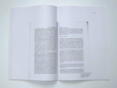 100 exemplaires étaient imprimés et reliés en direct dans l’espace performatif de l’Atelier de l’événement des écoles d’art du bassin rhodanien. Ils étaient ensuite troqués. J’ai proposé en échange cet article. J’espère ne pas avoir trop floué la jeune et ambitieuse équipe transversale d’universitaires et de graphistes…