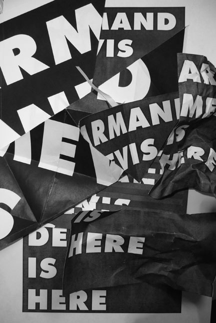 Jiminie Ha travaille avec économie et intelligence les rapports de la graphie et du papier, support archétypal et normalisé de l’impression. Il transforme les imprimés standards en véritables sculptures graphiques médiologiques.