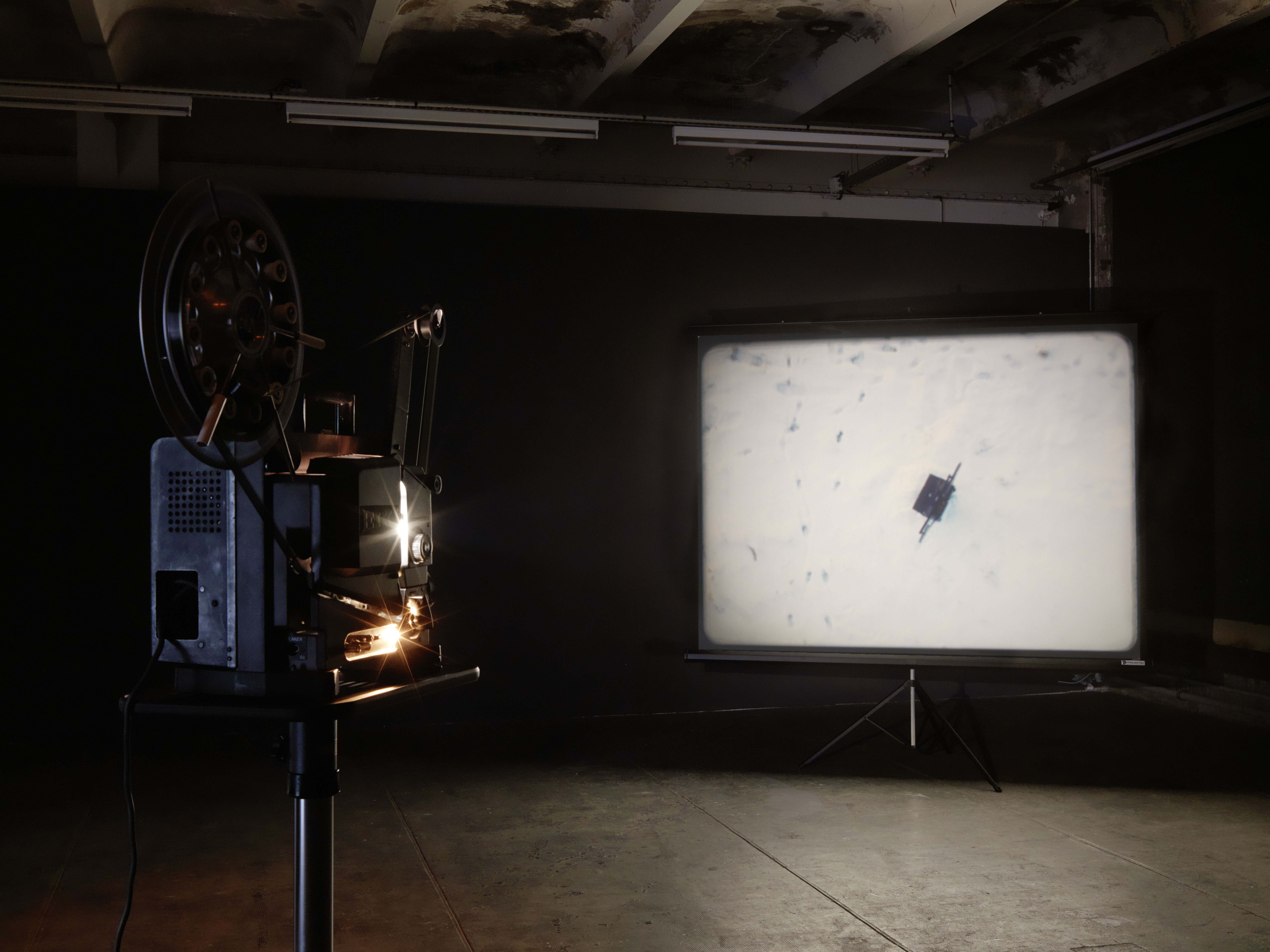 Alexander Gutke, Auto-scope, 2012. Film 16 mm ; 1 mn en boucle. Vue de lâexposition The Promise of Moving Things (commissaire : Chris Sharp), Centre dâart contemporain dâIvry â le CreÌdac, 2014. Photo : AndreÌ Morin / le CreÌdac. Courtesy Galerija Gregor Podnar, Berlin / Ljubljana.