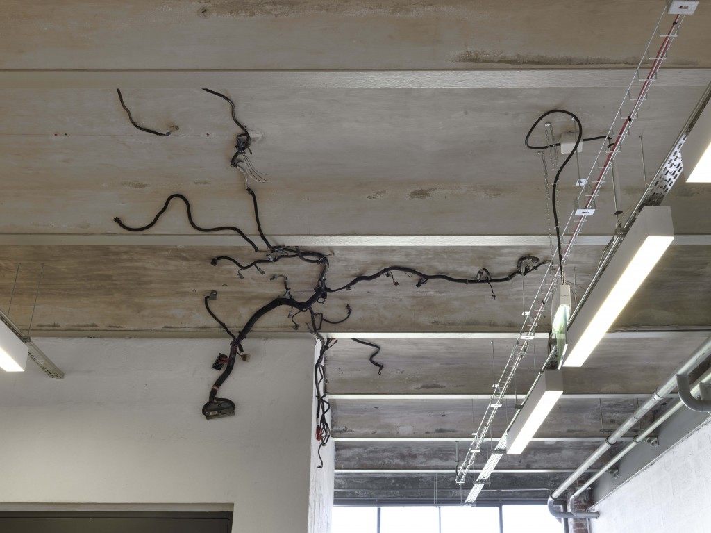 Michael E. Smith, Sans titre, 2014. Faisceau de caÌbles ; dimensions variables. Vue de lâexposition The Promise of Moving Things (commissaire : Chris Sharp), Centre dâart contemporain dâIvry â le CreÌdac, 2014. Photo : AndreÌ Morin / le CreÌdac. Courtesy de lâartiste, Clifton Benevento, New York & Michael Benevento, Los Angeles.