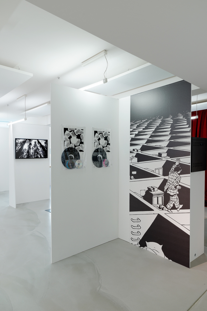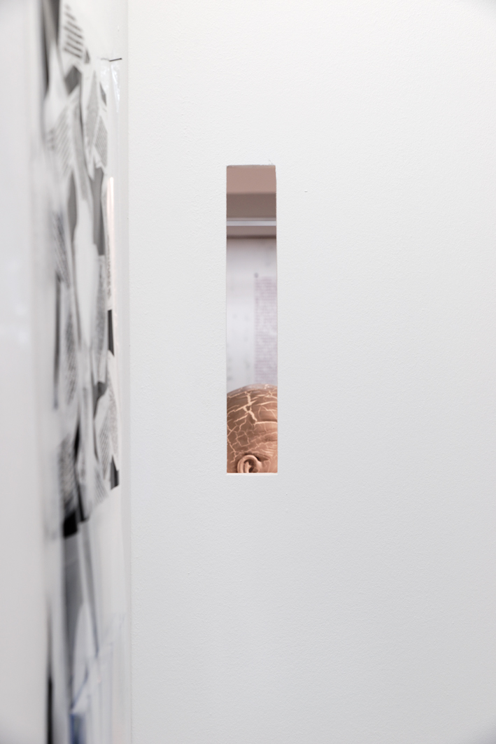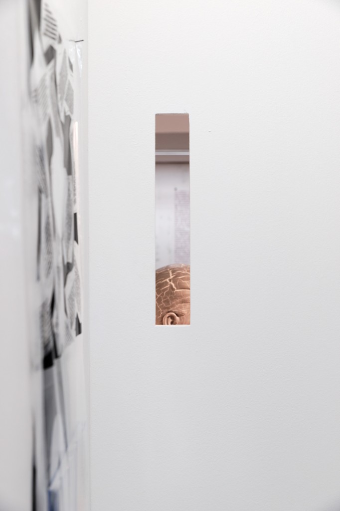 À dĂ©faut d’un lapin blanc courant après le temps, l’Alice perdue dans le monde de Traucum y aurait rencontrĂ© un personnage très carollien dans l’œuvre de Rita Sobral Campos : « Jump Cut Â», le montage personnifiĂ©, dont l’histoire est racontĂ©e de façon fragmentaire sur un papier peint mural. D’abord affranchi du contrĂ´le du Temps, puis du RĂ©cit mĂŞme, Jump Cut est ce personnage de plus en plus puissant qui n’obĂ©it qu’à ses propres règles, et qui semble ĂŞtre capable de crĂ©er du sens lĂ  oĂą ne règne que l’informe et l’incohĂ©rence du monde rĂ©el, tel le Roi Midas faisant naĂ®tre de l’or de tout ce qu’il touche. Car la porositĂ© du monde des images avec le monde rĂ©el pose par extension la question du montage et de la façon dont les images semblent capables de dialoguer entre elles par leur simple juxtaposition, de façon presque autonome. Une idĂ©e qui est incarnĂ©e par la scĂ©nographie de l’exposition, faite de dĂ©coupages Ă  angles droits, occasionnant des points de vues et des rapprochements visuels entre les Ĺ“uvres.
