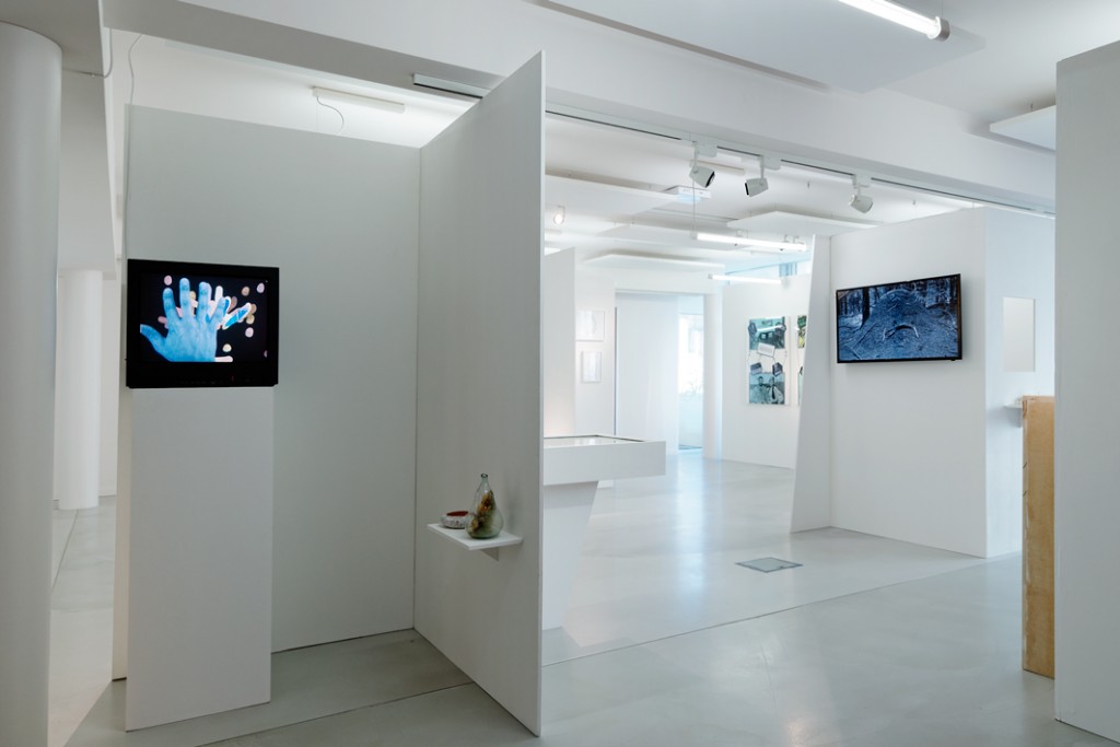Chez Aleksandra Domanovic, ce sont ainsi les traits de la grande histoire qui s’entremĂŞlent avec une histoire personnelle. Les bustes de Tito parcourus de fissures aux couleurs fluo qui jalonnent l’exposition ont, sous ses mains, pris les traits de son institutrice, en un raccourci visuel qui rappelle l’ambiguïtĂ© des images du rêve, permise par une manipulation numĂ©rique de l’image. Chez AurĂ©lien Mole et Christophe Lemaitre, cette banalisation de procĂ©dĂ©s visuels comme le morphing ou la 3D est rĂ©vĂ©lĂ©e par leur sĂ©rie de plans fixes sur une sculpture de papier en mouvement : si le geste est artisanal (hors-champ, une simple rotation Ă  la main de la sculpture sur un plateau tournant de potier), voire classique (on prĂ©sente souvent, pour la tĂ©lĂ©vision, des objets en rotation), l’image qui en rĂ©sulte a l’irrĂ©alitĂ© d’une 3D rudimentaire. Ce mĂŞme Ă©quilibre prĂ©caire entre un geste de la main et une image virtuelle trouve son expression dans la vidĂ©o de Pierre Paulin. Les mouvements de sa main sur un Ă©cran tactile, chorĂ©graphie abstraite de touches, de pincements, d’effleurements, sont transposĂ©s en gestes de peintre. A mesure que la main se dĂ©place Ă  l’écran, elle fait apparaĂ®tre des fragments d’une image cachĂ©e – peintures de Turner, de Van Gogh, artistes par excellence d’une « touche Â» qui les rend immĂ©diatement reconnaissables.