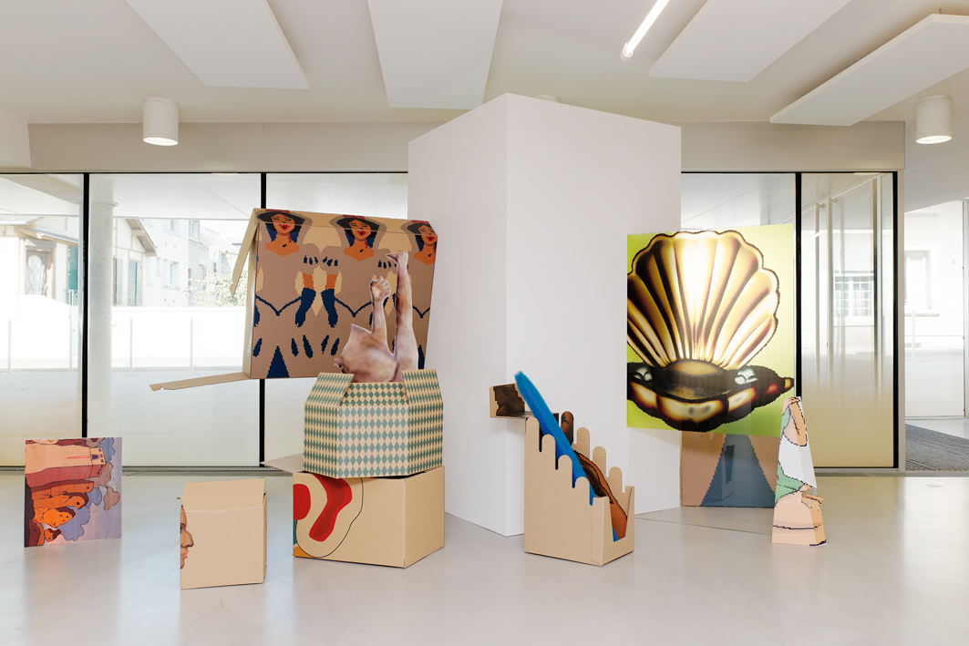 Une des plus belles trouvailles de Woody Allen est certainement cette scène de La Rose Pourpre du Caire oĂą Tom Baxter, personnage de fiction d’un mĂ©lo hollywoodien, sort de l’écran de cinĂ©ma pour aller Ă  la rencontre de la touchante Mia Farrow assise dans la salle. Ce film Ă©trangement cruel sur le pouvoir d’aliĂ©nation du cinĂ©ma est citĂ© en exemple par CĂ©line Poulin, commissaire de Traucum, et donne sans doute la clĂ© d’interprĂ©tation de cette exposition foisonnante. Car Ă  travers les projets d’une trentaine d’artistes aux pratiques très diffĂ©rentes, l’énigme de cette exposition rĂ©side bien dans ce percement, cette traversĂ©e de l’irrĂ©alitĂ© de l’image dans le monde rĂ©el. Une forme de contagion devenue l’obsession de notre Ă©poque, revendiquĂ©e – presque cĂ©lĂ©brĂ©e â€“ dès l’abord de l’exposition par un ensemble sculptural de Soraya Rhofir, en une joyeuse sarabande de gifs hypertrophiĂ©s en carton.
