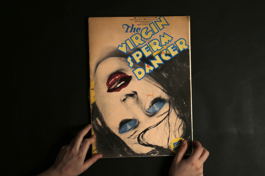 Le grand père, par exemple, nous propose de nous rincer l’œil avec un extraordinaire friandise. Un numéro de Suck Magazine, monument de la contre-culture amstellodamoise et premier sex paper européen, The virgin sperme dancer, publié en 1972.