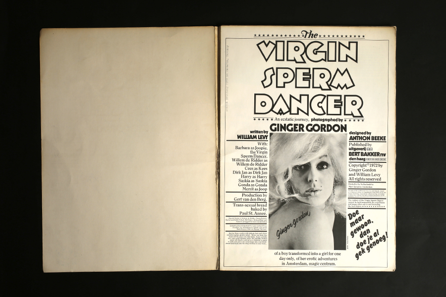 L’histoire transgenre d’un garçon transformé en fille pour une seule journée d’intenses expériences amoureuses, écrite par William Levy, publiée par Bert Bakker le neveu, avec des photographies de Ginger Gordon et le graphisme joueur du provocant Anthon Beeke.