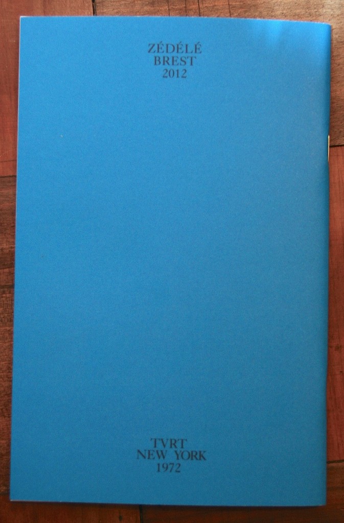 C’est en faisant ce constat, et pour valider le projet du livre d’artiste (celui d’être de l’art tout en étant un livre comme n’importe quel autre), que les éditions Zédélé (Brest), en la personne de Galaad Prigent, ont récemment entrepris de rééditer des livres d’artistes historiques au sein d’une collection intitulée « Reprint » et dont la direction est assurée par deux des principaux spécialistes de l’histoire de cette pratique et des enjeux théoriques qui s’y rapportent : Anne Moeglin-Delcroix et Clive Phillpot.