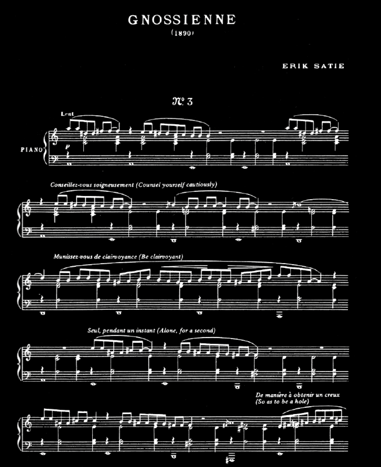 -  De nombreux exemples montrent que les mots ne sont pas forcĂ©ment capables d’exprimer une intention musicale, et peuvent rester très abstraits en cherchant Ă ĂŞtre concrets. Par exemple, les annotations de partitions de compositeurs comme Claude Debussy ( 1862–1918 ) ou Maurice Ravel ( 1875–1937 ) ou encore Erik Satie (1866-1925) ont le double statut d’indication de jeu et de narration et peuvent se rĂ©vĂ©ler complexes et malheureusement inciter aussi bien Ă la crĂ©ativitĂ© qu’au mimĂ©tisme. Comment se fait-il qu’une annotation comme «De manière Ă obtenir un creux» se retrouve ĂŞtre jouĂ©e par plein de personnes de la mĂŞme façon? Les mots peuvent peut-ĂŞtre aussi bien profiter comme nuire Ă la libertĂ© crĂ©atrice d’interprĂ©tation, en tout cas dans la musique. [↩]