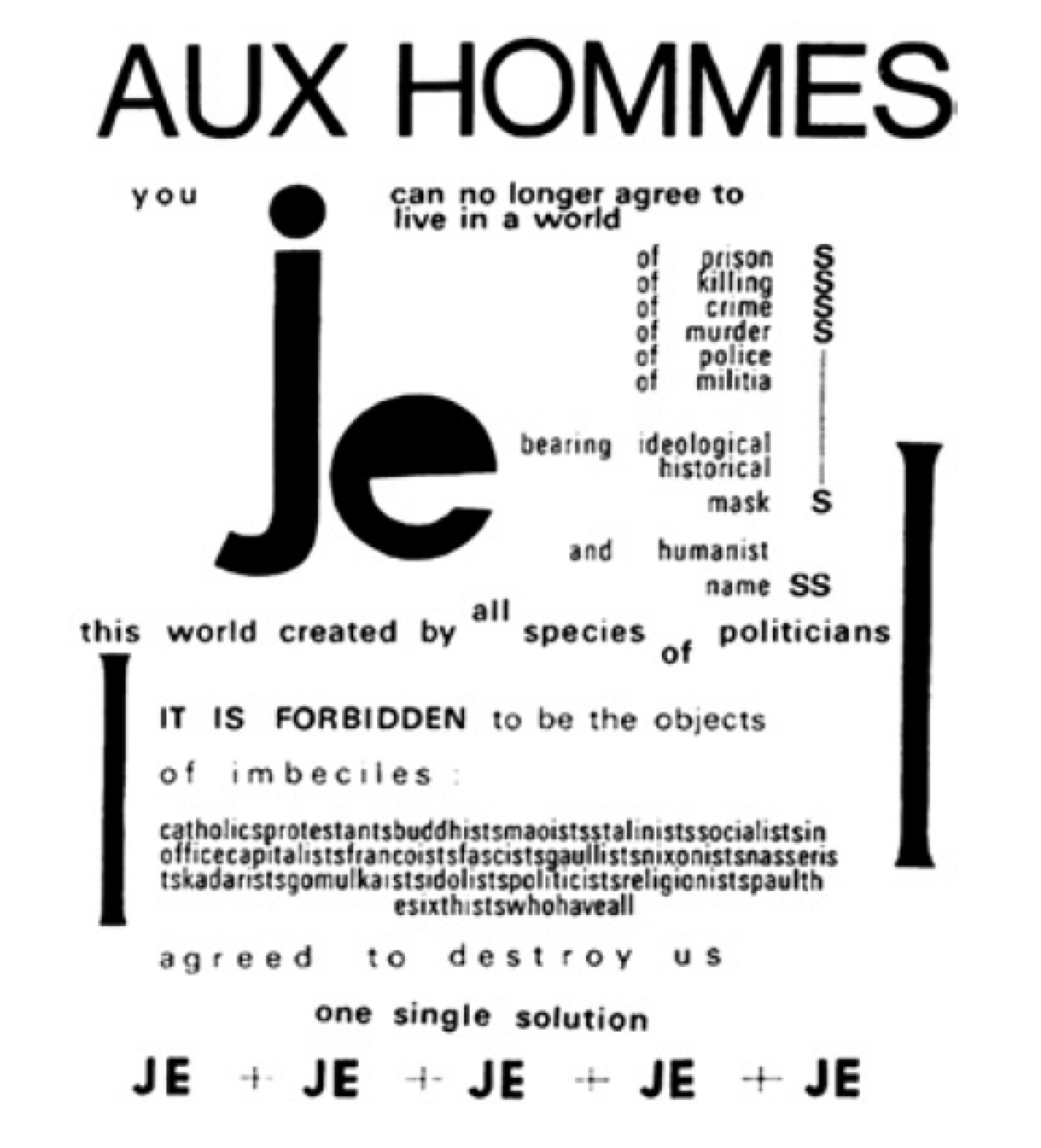 L’objet typographique est donc à l’honneur et s’il est bien un atout que possède la forme écrite de l’œuvre, c’est l’emploi possible de la typographie et les conséquences qu’elle engendre, à savoir la possibilité de produire des multiples et d’assurer une diffusion au travers de leurs éditions. Souvent, bien que la longueur de ces documents soit courte, un soin particulier est accordé à leur composition. De nombreux poèmes-partitions à l’origine des performances Fluxus les plus radicales sont traitées dès 1960 de manière extrêmement graphique. L’expérimentation menée sur le support imprimé est proportionnelle à l’intensité de la performance.