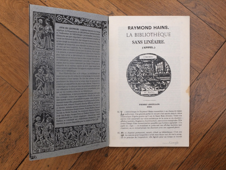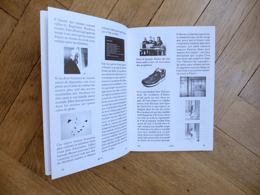 Ce qui est formulé à travers cette première contribution, c’est une invitation faite au lecteur de Δ⅄⎈ à s’approprier des contenus – selon une approche intertextuelle – et à une fidélité au gré des numéros. Pointe aussi un goût pour des supports réalisés avec un certain effacement du design graphique2 ou pour être plus juste un design graphique circonstanciel.