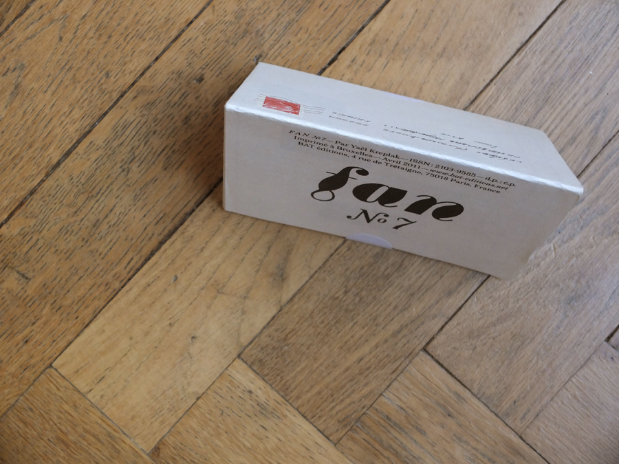 - Un A3 dont le format fini est inférieur à celui d’une enveloppe standard (A6) à 100 exemplaires et diffusé par voie postale à un ensemble de contacts permanents tirés au sort pour chaque envoi et des contacts issus du réseau spécifique de chaque projet édité. Il n’y a donc pas de système d’abonnement, juste l’espoir d’en recevoir un jour, un ou plusieurs numéros. 13 numéros sont parus entre 2008 et 2012. [↩]