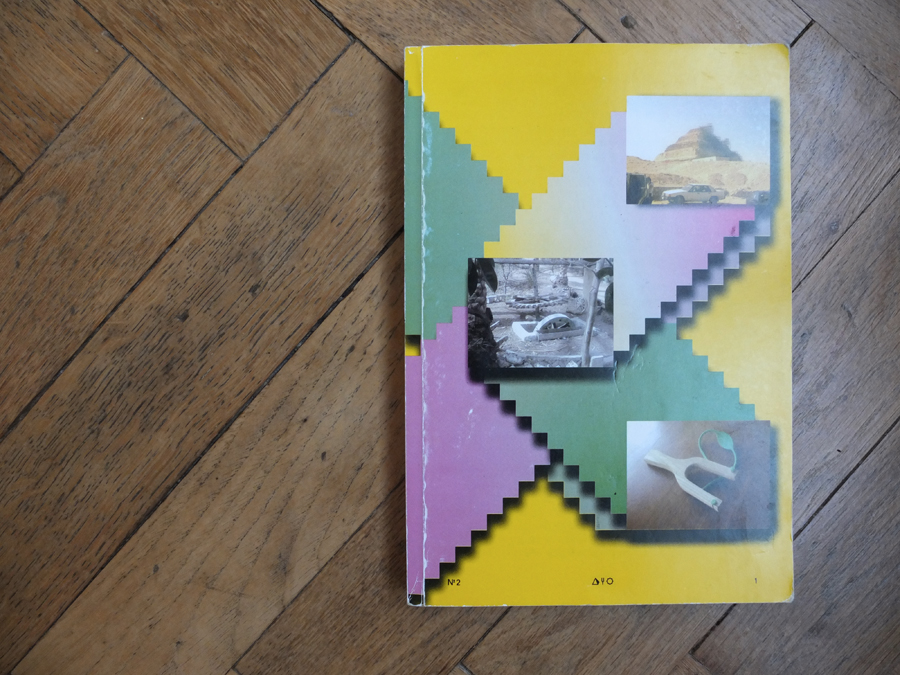 A priori informulable, du registre du rébus plus que du texte, le titre de la revue apparaissait d’emblée comme une énigme à résoudre (mais aussi un handicap pour sa diffusion1. Δ⅄⎈ est un titre-paysage. Comme une promesse, se profile un horizon peuplé de temples (à la forme élémentaire de la pyramide), de logotypes (avec un diapason comme trait d’union entre l’univers musical et celui de la construction motocycliste de la firme Yamaha) et de mécanismes de précision (on entend le clic-clac d’une montre suisse au poignet de Le Corbusier).