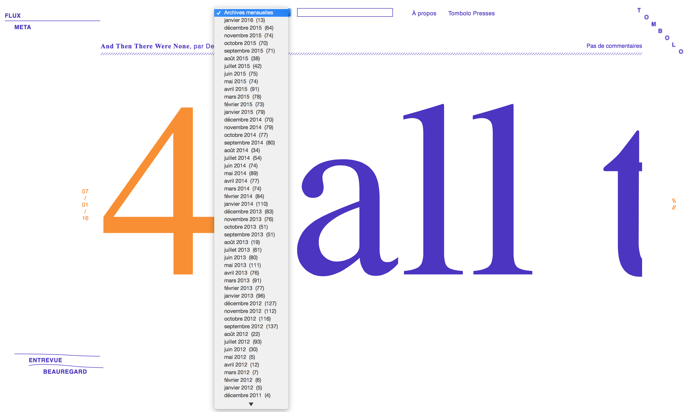 Pas de commentaires And Then There Were None, par Derek Beaulieu Laisser un commentaire Annuler la réponse. Votre adresse de messagerie ne sera pas publiée. Les champs obligatoires sont indiqués avec * Nom * Adresse de contact * Site web Veuillez recopier les caractères ci-dessus. Commentaire Vous pouvez utiliser ces balises et attributs HTML : <a href="" title=""> <abbr title=""> <acronym title=""> <b> <blockquote cite=""> <cite> <code> <del datetime=""> <em> <i> <q cite=""> <s> <strike> <strong> 4 all two one one ought a couple another one two one one ought 07 / 01 / 16