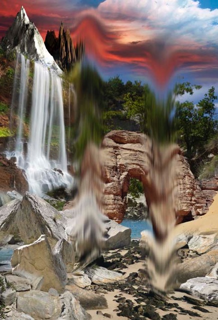 Les paysages liquides de MS matĂ©rialisent une nouvelle Ă©conomie du dĂ©sir. Avec lâaffiche pour lâexposition collective au Credac, Le travail de riviĂšre (2009), la plongĂ©e voyeuriste dans cette fluiditĂ© imbriquĂ©e et dĂ©bordante Ă©voque littĂ©ralement le concept et lâinstallation Ătant donnĂ©s : 1° la chute d’eau, 2° le gaz dâĂ©clairage (1946-1966) : « En 1946, Marcel Duchamp a sĂ©journĂ© cinq semaines en Suisse en compagnie dâune de ses amies, Mary Reynolds. (âŠ) Il logeait Ă lâHĂŽtel Bellevue (âŠ), non loin de la premiĂšre chute du Forestay. (âŠ) Duchamp a photographiĂ© cette situation et il a intĂ©grĂ© cette image dans son ultime grand chef-dâĆuvre, lâinstallation Ătant donnĂ©s : 1° la chute d’eau, 2° le gaz dâĂ©clairage (1946-1966). Cette Ćuvre reprĂ©sente le 1°, la chute dâeau, comme le vagin de la nature, dâoĂč jaillit un flux, entre deux pans de montagne Ă©cartĂ©s (formant un angle ouvert) »32.