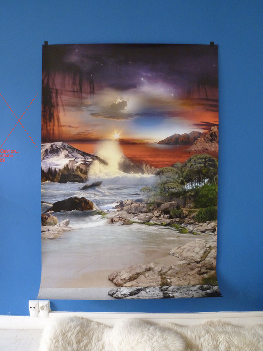 Pour le festival Ă©lectro Calvi on the rocks (juillet 2009), MS, grĂące Ă des snapshots de vues de la Corse (et dâautres ailleurs exotiques), reconstruit un paysage paradisiaque de lâĂźle (quâil ne connaĂźt pas). Ciel Ă©toilĂ©, coucher de soleil, les plages corses font rĂȘver16, mais en bas de lâaffiche, un dĂ©calage incongru â un double de la partie basse de lâimage en noir et blanc â fait tĂąche. Ce dĂ©cadrage marginal perturbe la lecture du jeu de strates de plages se superposant jusquâĂ la ligne dâhorizon, seule ligne stabilisĂ©e.