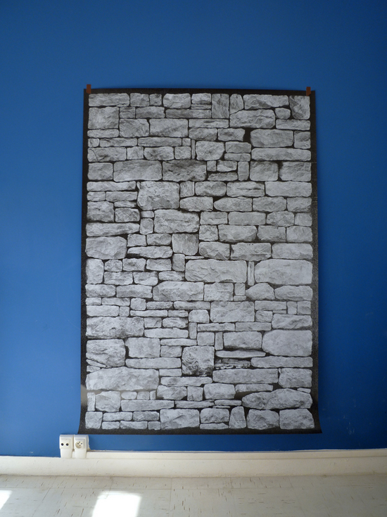 Pour Mur (saint Jean) (2012), MS fabrique en grisaille un trompe-lâĆil. Il a scannĂ© une Ă une des pierres pour reconstituer un mur non cimentĂ©, « transformant la rĂ©alitĂ© en objet virtuel, en espace de projection »8. Lâaffiche est symboliquement un mur intĂ©rieur (MS fait rĂ©fĂ©rence Ă son pĂšre architecte et Ă la maison de son enfance) et un mur aveugle de pavĂ©s : un graphiste lutte pour Ă©chafauder son parcours et poursuit lâidĂ©e utopique que lâaffiche peut ĂȘtre une pierre fondamentale Ă lâĂ©ducation (ou Ă la rĂ©volte) des citoyens. Lâaffiche, reflet dâune sociĂ©tĂ©, passe de la fenĂȘtre ouverte sur le monde Ă lâopacitĂ© emmurĂ©e. Lâaffiche accuse sa matĂ©rialitĂ© de support. Elle revendique sa rĂ©alitĂ© constituante, le mur.