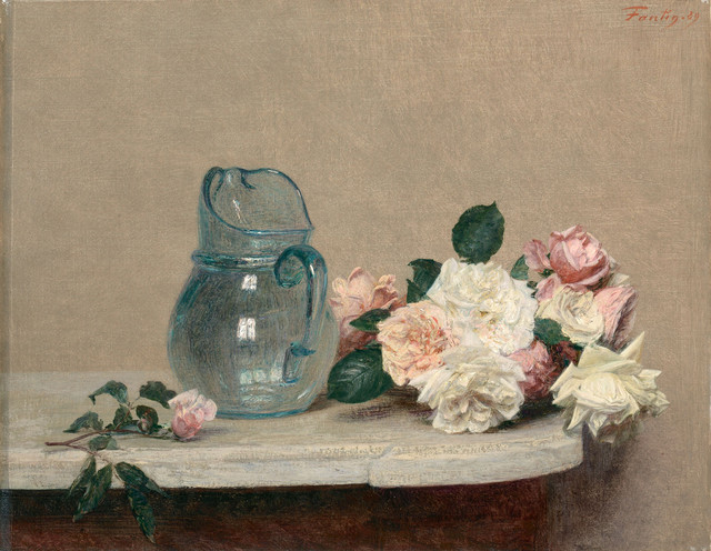 Henri Fantin-Latour, Roses, 1889, Lyon, musĂ©e des Beaux-Arts. Paul Claudel aurait Ă©crit Ă  ce sujet « chaque tableau apporte avec lui un carrĂ© de silence et une raison Ă  notre ramage intĂ©rieur de s’interrompre Â».