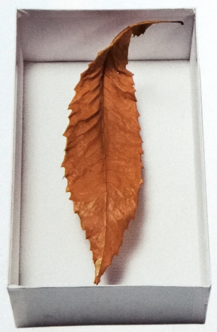 Un graphiste Ă  l’époque du libĂ©ralisme tchatchĂ©rien a retenu une feuille puis il s’autorise Ă  la regarder vieillir. « I still have the leaf although I keep thinking that one day it will fall apart  Â».