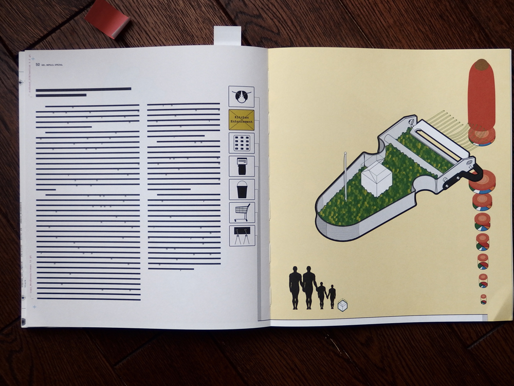 Il y a souvent sur une surface délimitée, un angle, où « ça » dysfonctionne, où « ça » délire, où « ça » bombarde de commentaires techniques, de rages inexplorées. La forme déverse, canalise le contenu. La forme est une ouvrière soumise à des conditions précaires et instables. Chez Sagmeister, chez Woodtli, comme chez d’autres, ce « ça », ces débordements46 incorrigibles sont sciemment offerts à la lisibilité — au déchiffrage ou à la révolte intime47, avec pour intention de « faire passer des flux, sous les codes sociaux qui veulent les canaliser, les barrer »48.