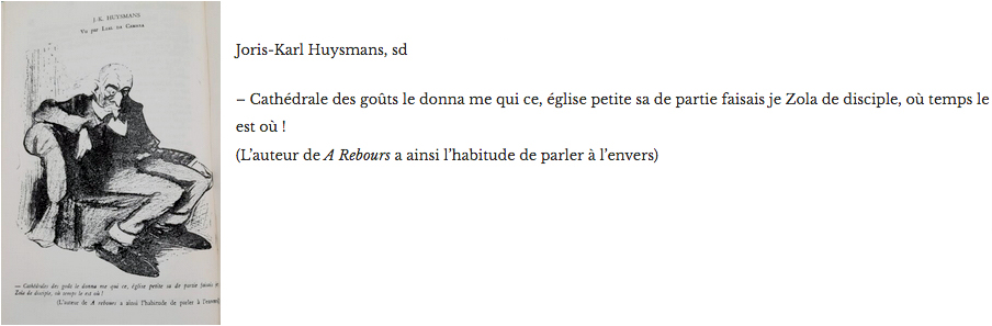 Ce texte tire peut-être son rythme des notes prises par Huysmans pour garder mémoire de son projet, en 1886 (voir la citation de ces notes dans l’avant-propos de M. Garçon).