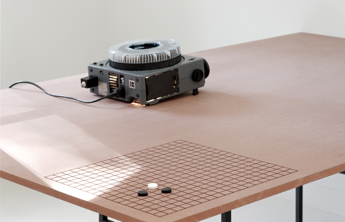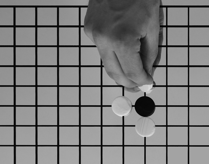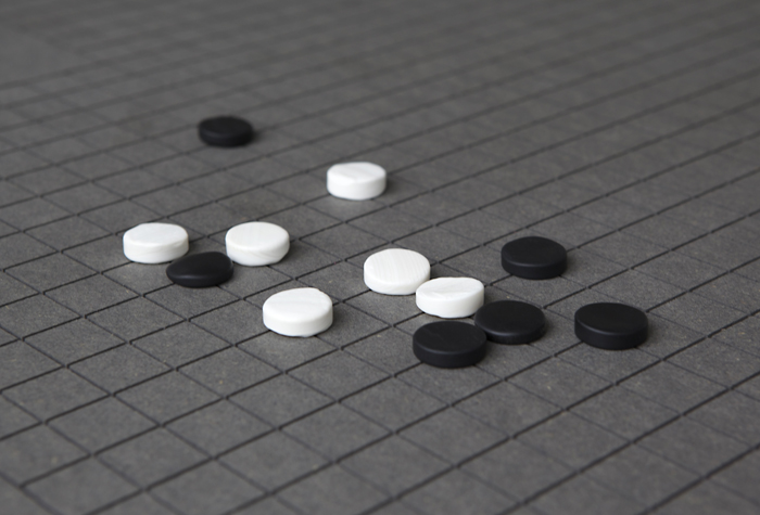 Généralement présenté comme le plus ancien jeu1 de stratégie combinatoire abstrait connu (à minima 5 à 8 siècles avant Jésus-Christ, en Chine), le go oppose deux joueurs pour le partage des territoires d’un plateau. Les pierres blanches ou noires de chacun des deux joueurs, posées tour à tour sur les intersections de la grille du goban, esquissent des chaînes qui sont autant de lignes de force et bordures destinées à développer le plus grand territoire possible.