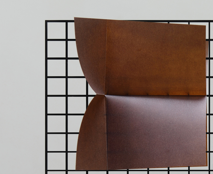 Et si plutôt que de poser une pierre en position l’on plie deux fois une feuille de papier pour marquer l’intersection en question, puis que l’on répète ce geste très simple pour une seconde voire une troisième pierre qui constitueraient alors toutes ensembles une forme (1ère définition) : tandis que le papier se cambre avec légèreté, les plis composent et révèlent enfin dans la feuille les champs d’influence de la forme.