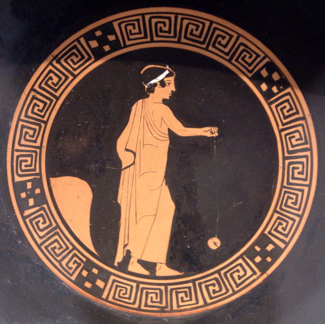 Médaillon d’un kylix attique à figures rouges représentant un garçon jouant au yo-yo, v. 440 av. J.-C, Altes Museum de Berlin