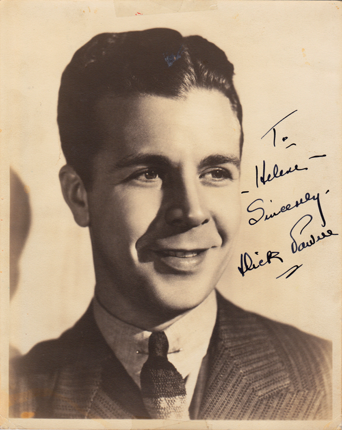 - Sur la photo dédicacée par Dick Powell, on saisit le prénom Helene dans sa graphie anglo-saxonne sans accents. Hélène, avec accents, est le prénom que donne Resnais à Delphine Seyrig dans Muriel ou le temps d’un retour [1963]. Pour Benayoun, Muriel est le seul film «politique» de Resnais où est clairement évoquée la guerre d’Algérie. Il y est aussi question de curieuses machines de projection à diapositives qui sont la métaphore du film: des carrés kodachrome comme territoires des souvenirs… [↩]