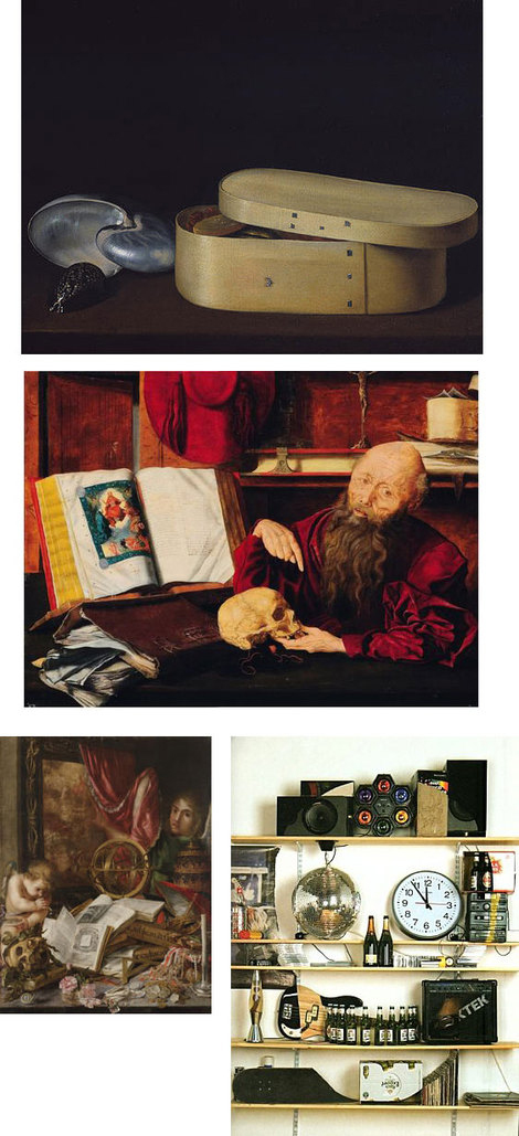 de haut en bas: Sébastien Stoskopff, Nature Morte au Nautile, c.1630 (via wodka blog) / École Flamande du XVIIIè siècle, atelier de Marinus van Reymerswaele, Saint Jérôme dans son Cabinet (via Alain Truong) / Juan de Valdés Leal, Allegory of Vanity, 1660 (via Alain Truong, merci!) / James Hopkins, Wasted Youth, Galerie Cosmic, 2006 (via wodka blog)