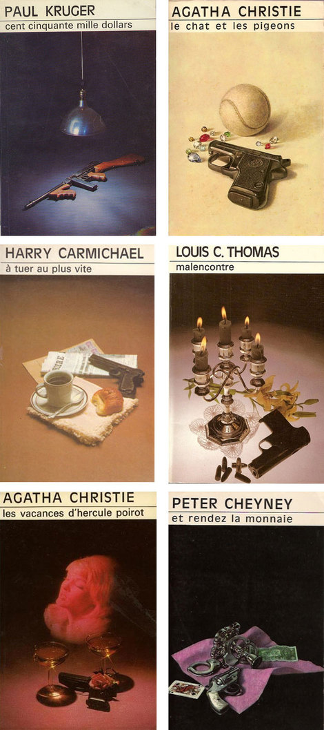 Le mot Mystère sied Ă propos tant l’idĂ©e de rituel semble guider ces images censĂ©es parler de meurtre sans le montrer. Elles crĂ©ent un micro-monde, une scène primordiale qui n’est dĂ©jĂ plus celle du crime et pas encore celle du chuchotement au gĂ©nĂ©ral «souviens-toi que tu vas mourir». Les Ă©lĂ©ments, tous symboliques Ă des degrĂ©s divers, prennent place et renvoient au genre typiquement hollandais du XVIIème siècle ici modernisĂ© sous la forme de VanitĂ©s contemporaines. Ces compositions photographiques (le nom de Patrick Magaud revient rĂ©gulièrement sur ces couvertures pour la plupart non signĂ©es) deviennent parfois peintures analytiques et la forme du trompe-l’oeil renforce alors la nature des romans: faire croire Ă la perfection du crime. VĂ©ritables natures mortes, mĂŞme si le mot anglais de still life serait plus appropriĂ© tant la mort semble absente, ou plutĂ´t flottante, ces images fascinent et intriguent. On pourrait les rapprocher des allĂ©gories-inventions littĂ©raires et voir les vices ou les vertus s’y disputer comme dans la Psychomancie de Prudence.