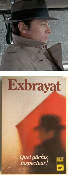 haut: extrait d'un photogramme du Samouraï de J.P. Melville (1967). Le profil connoté du tueur ou de l'inspecteur au feutre, à la gabardine et au trench.
