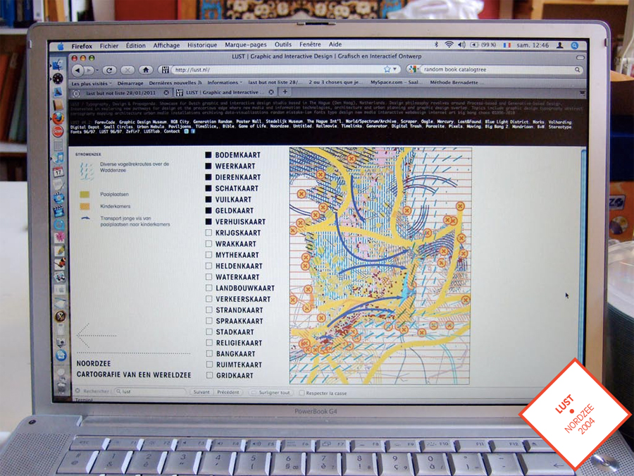 Le studio Lust n’échappe pas à la passion intermedia de l’archive. En 2009, à l’occasion de l’ouverture du nouveau musée du design à Breda, il imagine une installation numérique qui crée des posters – ce format peut-être emblématique des temps révolus – ou plutôt des images toujours numériques de poster, à partir du flux informationnel d’internet. Ces posters sont produits à intervalles réguliers à partir d’une série d’algorithmes définissant des procédures d’acquisition et de transformation des données. Ces informations de données transformées par des informations de traitement en informations de rendu renouvellent le vocabulaire d’analyse et de représentation du graphisme d’information. Les posters numériques aux physionomies paraissant sans cesse renouvelées viennent s’amonceler sans fin sur un grand panneau vidéo dans une fresque presque héroïque à la gloire tout à la fois de la qualité de puissance du calcul et de la quantité des formes du nouveau milieu consacré de la vie de l’information.