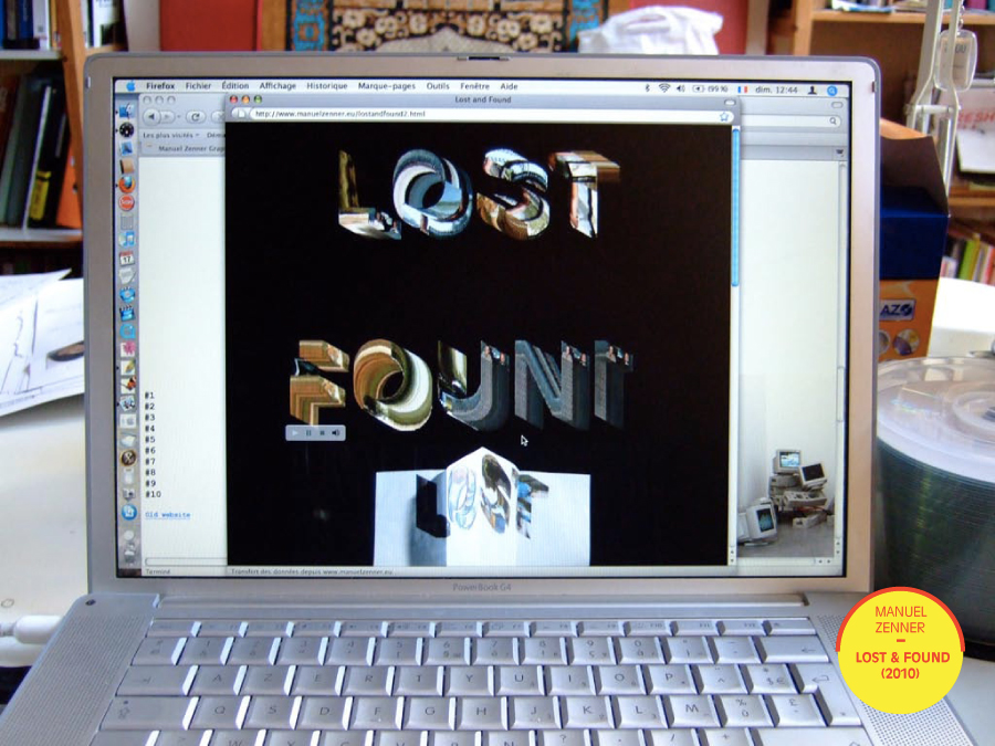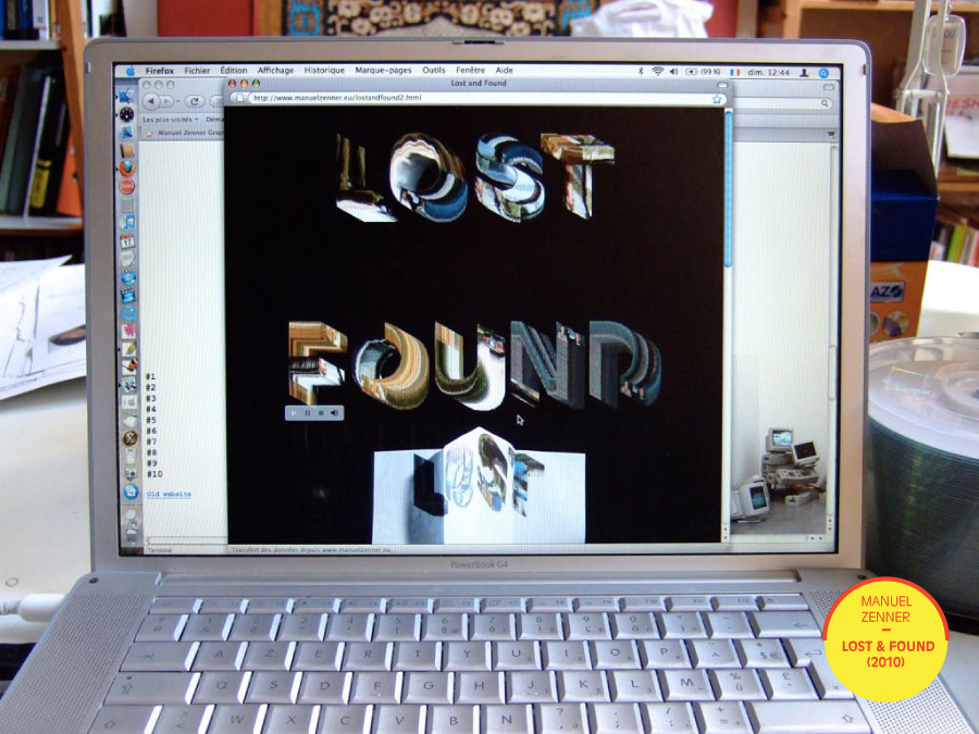La capacité de calcul de l’informatique pouvait transformer, comme le faisait Manuel Zenner en 2010, une séquence de film en archive animée. Sur fond cinématographique d’écran noir s’écrivait progressivement en information lumineuse le nom du fonds artistique expérimental néerlandais Lost and Found. Les 24 photogrammes de « réalité par seconde » – et leur son attaché – de la scène choisie du travelling sur la voie sans issue du bien nommé Lost highway de David Lynch se compilaient en une archive stridente et un titrage tout capitales à la typographie impeccable.