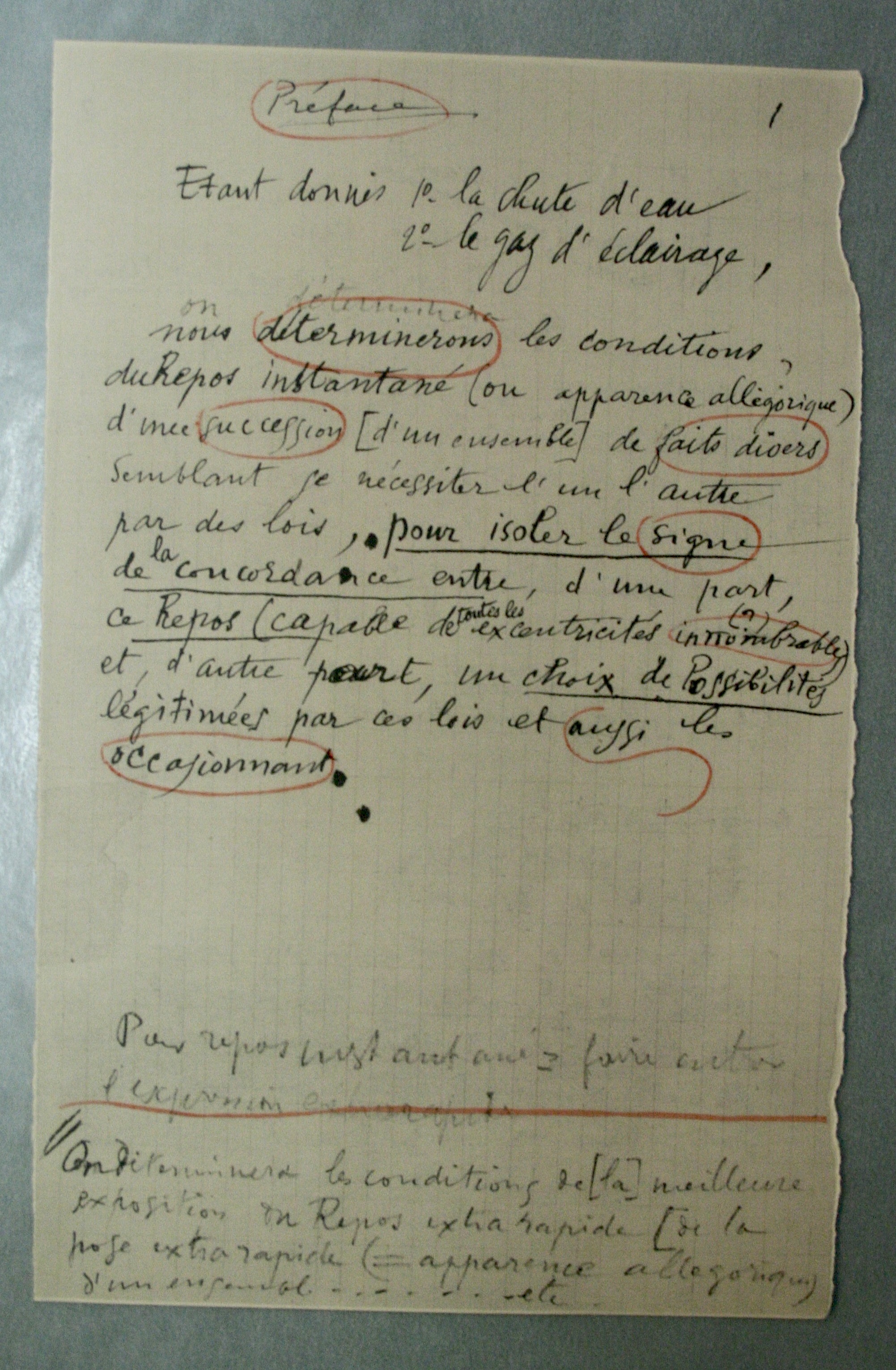 nous déterminerons les conditions du Repos instantané (ou apparence allégorique) d’une succession [d’un ensemble] de faits divers semblant se nécessiter l’un l’autre par des lois, pour isoler le signe de la concordance entre, d’une part, ce Repos (capable de toutes les excentricités innombrables) et, d’autre part, un choix de Possibilités légitimées par ces lois et aussi les occasionnant.
