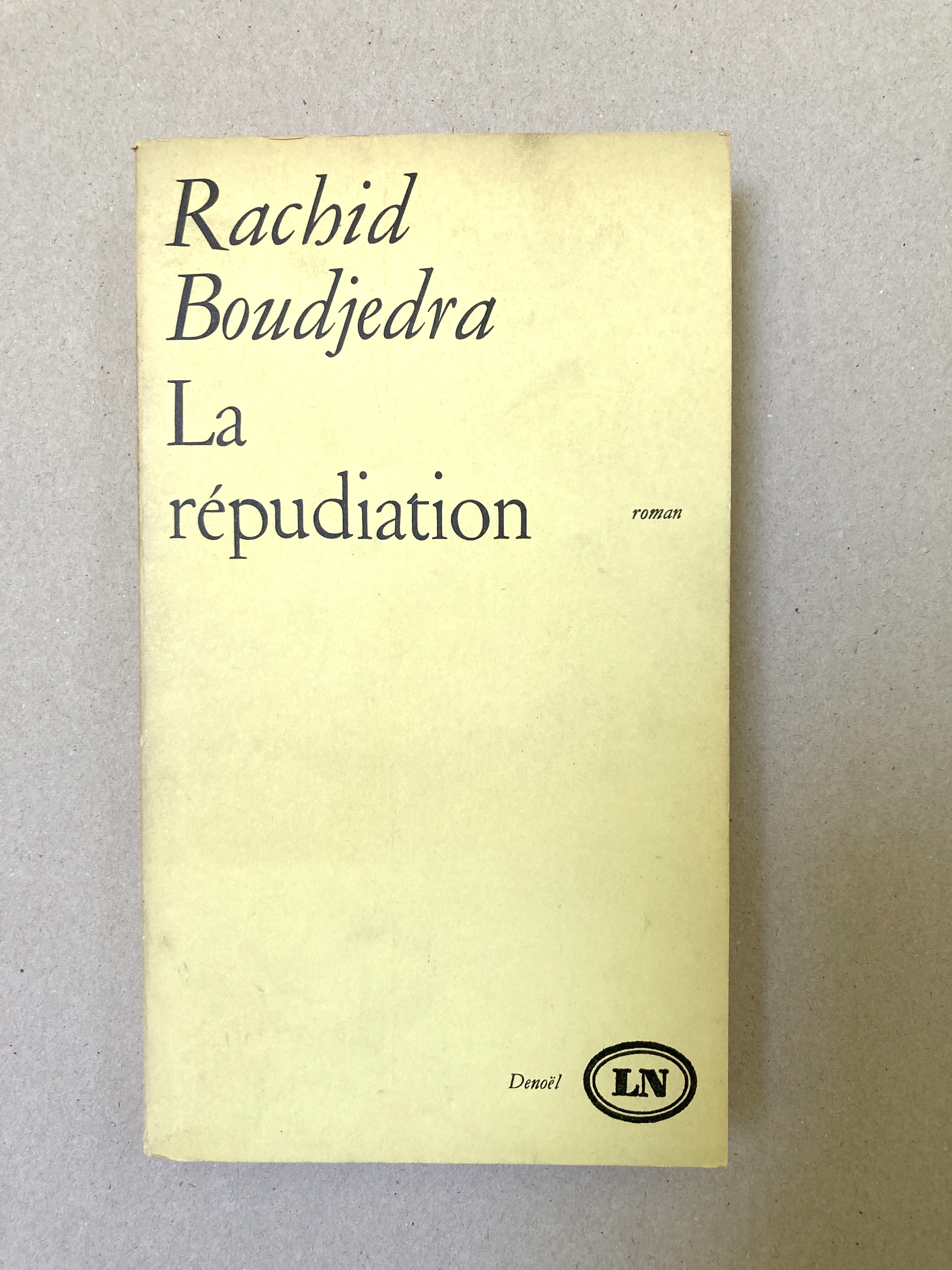 - Rachid Boudjedra, La RĂ©pudiation, Paris, coll. «Lettres Nouvelles», Éditions DenoĂ«l, 1969, p. 105. [↩]